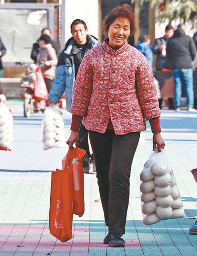 山西省運(yùn)城市新絳縣陽(yáng)王鎮(zhèn)蘇陽(yáng)村黨群服務(wù)中心,困難群眾領(lǐng)取社會(huì)捐贈(zèng)的愛(ài)心年貨。