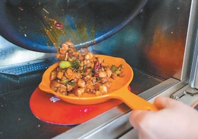 劉楊現(xiàn)場下單了一份干燒雙菇,炒好后,打開柜門的那一刻,香氣撲面而來。“肯定比我自己做的好吃,比一些餐廳的味道也好?!眲钫f:“如果家中來客,炒3個菜帶回家,總共也就幾十元,比下館子劃算得多?!?/p>