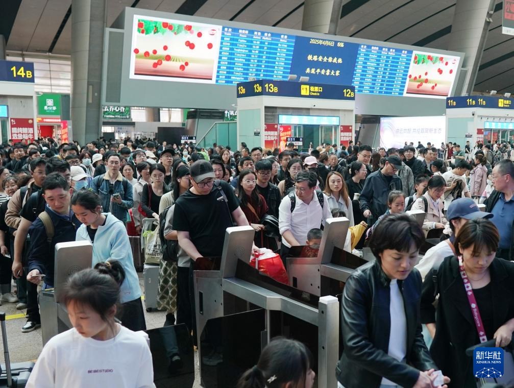 圖為4月6日,旅客在北京南站檢票乘車(chē)。