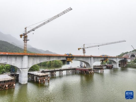 這是4月12日拍攝的合龍后的成渝中線高鐵玄天湖雙線大橋。