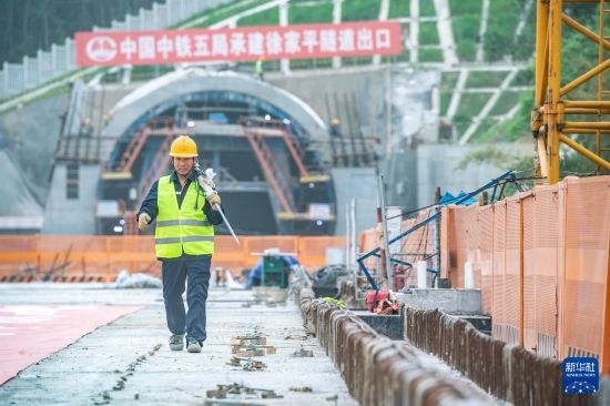 4月12日,工人在成渝中線高鐵玄天湖雙線大橋建設(shè)現(xiàn)場施工作業(yè)。