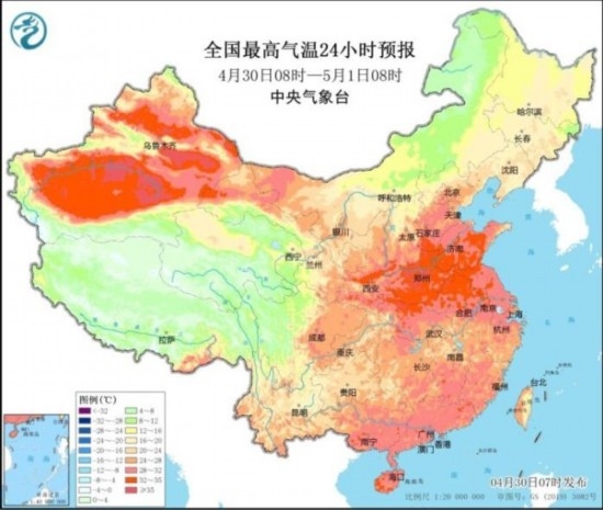 昨日,河北南部等地最高氣溫超過35℃。預計今天,華北、黃淮一帶氣溫仍較高,包括鄭州在內的部分地區(qū)今天最高氣溫可達35℃。五一假期臨近,氣象專家提醒,假日前期全國大部地區(qū)降雨偏弱,氣溫偏高,公眾在外出游玩時注意防暑防曬。假日后期南方地區(qū)雨水增多,外出時需注意避雨和防御強對流天氣。