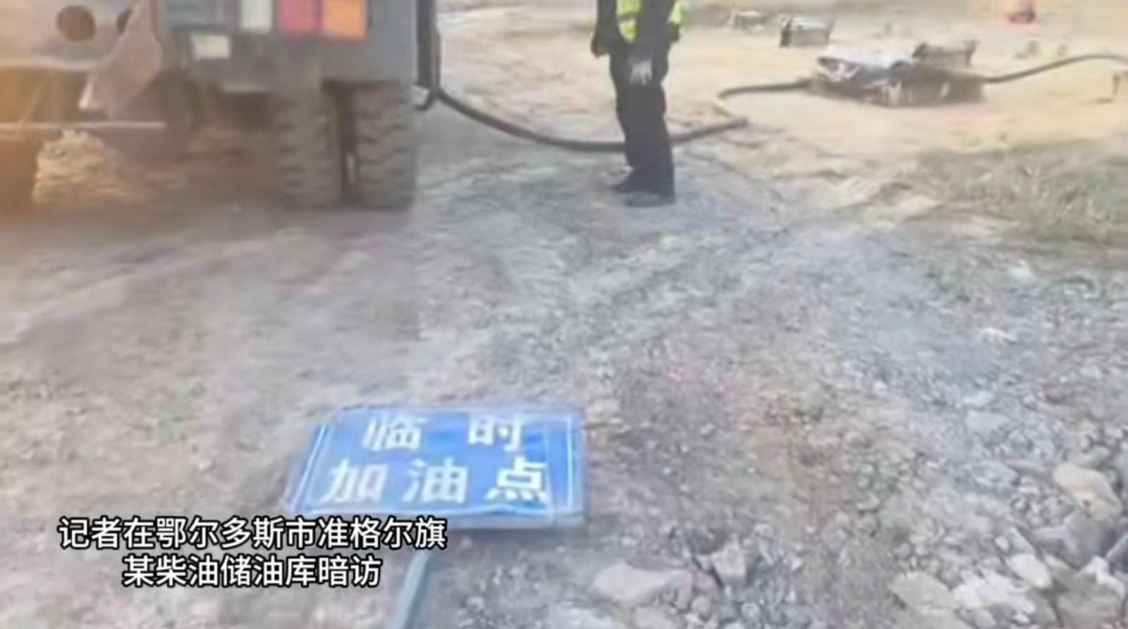然而,記者在現(xiàn)場(chǎng)暗訪時(shí)注意到,正在抽油的那輛無牌運(yùn)油車上,清晰標(biāo)注著“準(zhǔn)聯(lián)煤礦2號(hào)加油車”字樣,在現(xiàn)場(chǎng)作業(yè)的男子也承認(rèn)這里是準(zhǔn)聯(lián)煤礦的儲(chǔ)油庫(kù),這顯然與賀主任的說法完全相悖。