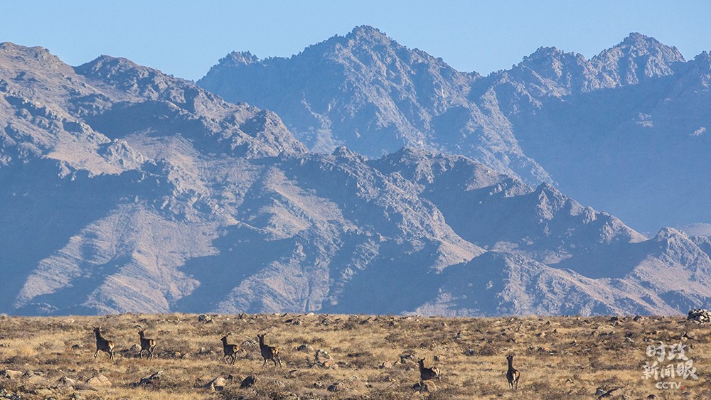 △巖羊是國家二級保護(hù)動物,因攀登本領(lǐng)高超被譽(yù)為“峭壁精靈”?!稌r政新聞眼》恰巧捕捉到它們跳躍的身影。(總臺央視記者陶鵬飛拍攝)