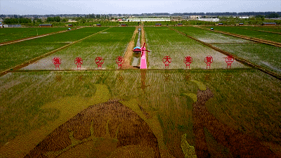 △稻田畫讓稻漁空間變身“網(wǎng)紅景點”。(總臺央視記者康曉宇、李浩男拍攝)