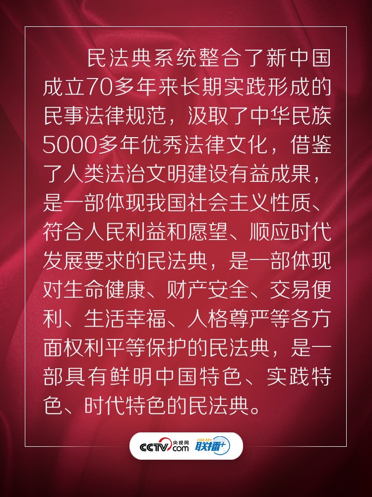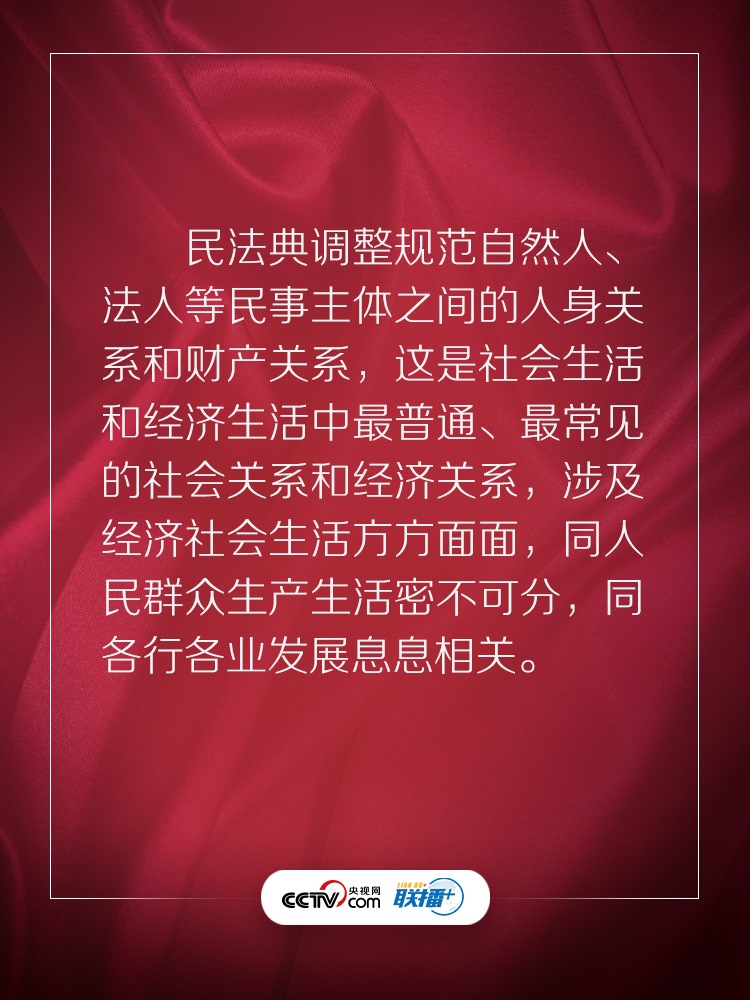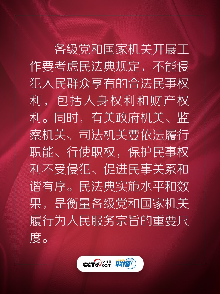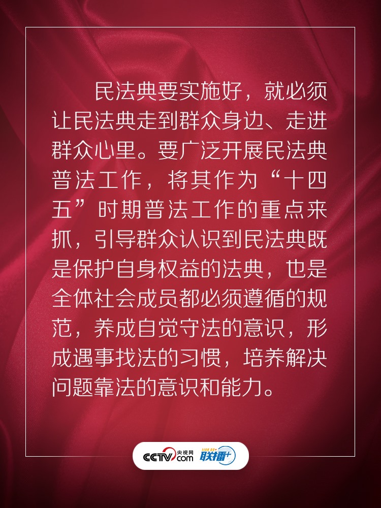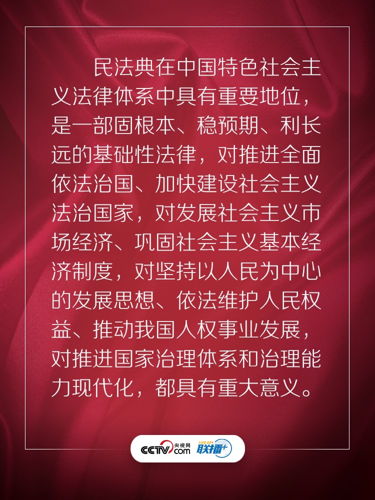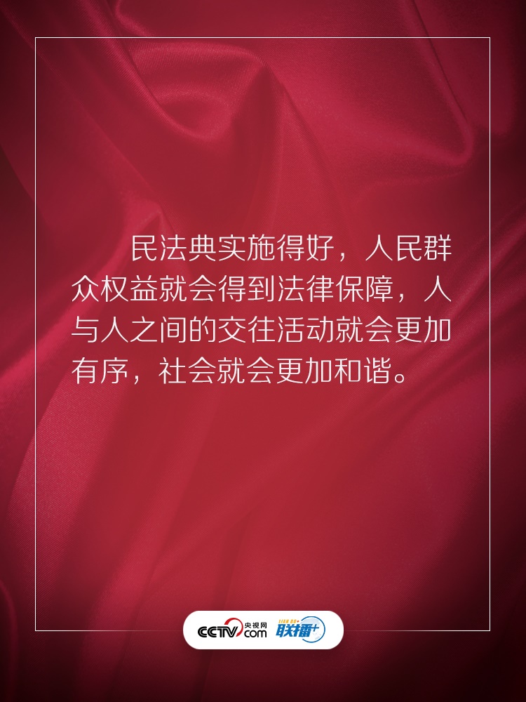 聯(lián)播+ “實(shí)施好民法典是堅持以人民為中心、保障人民權(quán)益實(shí)現(xiàn)和發(fā)展的必然要求。”
