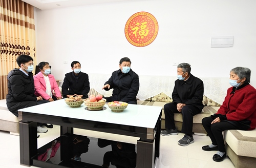 4月21日,習(xí)近平在安康市平利縣老縣鎮(zhèn)錦屏社區(qū),同搬遷戶(hù)汪顯平一家圍坐在一起拉家常。
