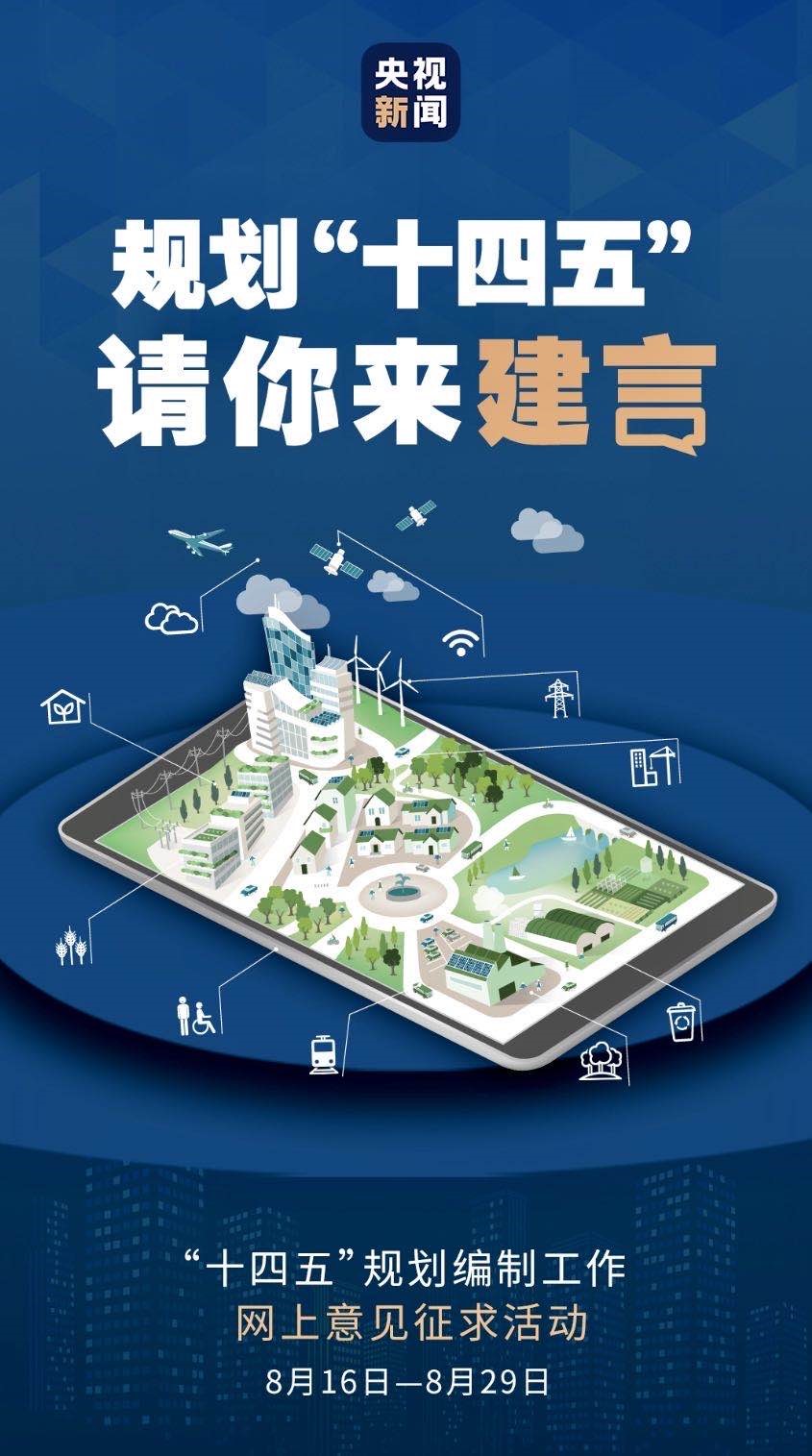 明年,我國(guó)開(kāi)始實(shí)施“十四五”規(guī)劃。前不久,總書(shū)記對(duì)“十四五”規(guī)劃編制工作作出重要指示,要求開(kāi)門(mén)問(wèn)策、集思廣益,切實(shí)把社會(huì)期盼、群眾智慧、專家意見(jiàn)、基層經(jīng)驗(yàn)充分吸收到“十四五”規(guī)劃編制中來(lái)。