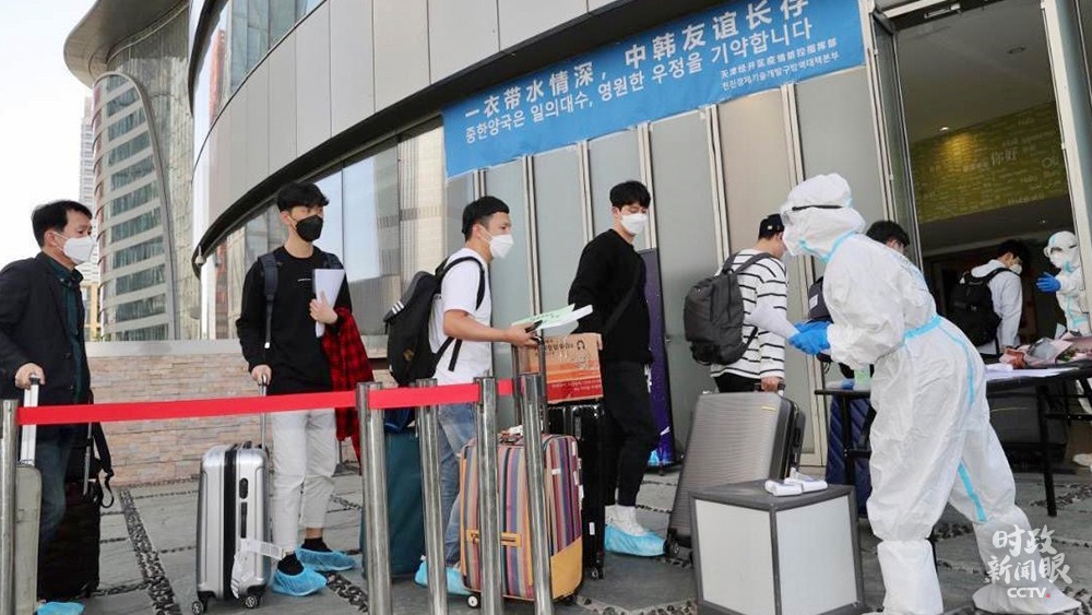 △中韓兩國(guó)啟動(dòng)人員往來(lái)“快捷通道”。這是來(lái)自韓國(guó)的企業(yè)員工抵達(dá)天津。