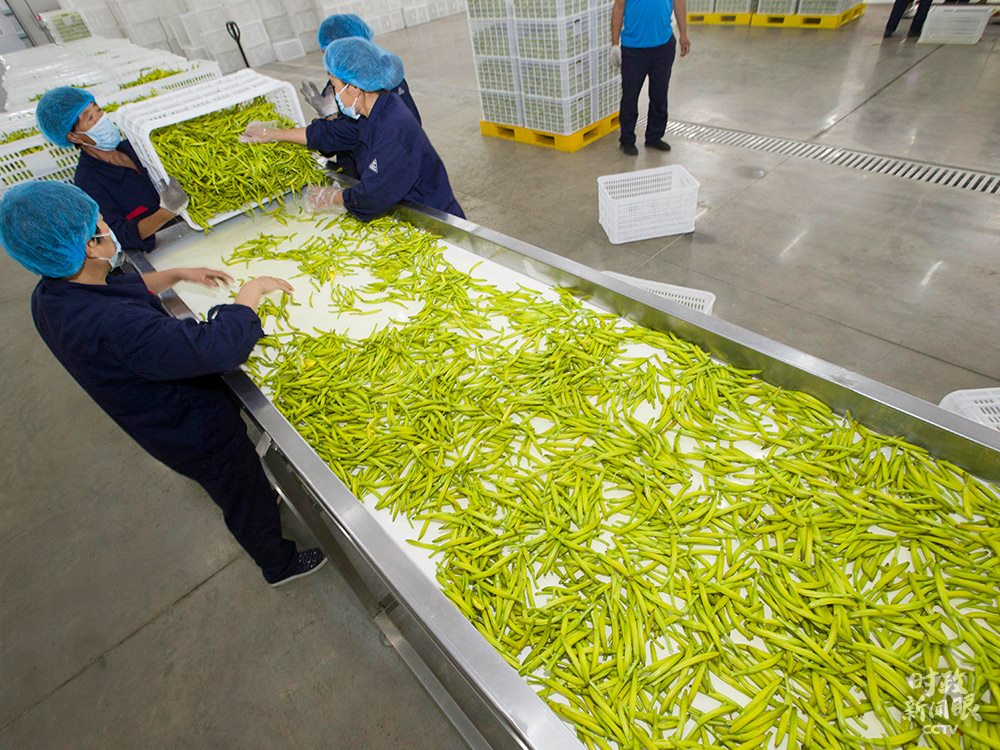 △7月中旬,山西大同黃花進(jìn)入采摘季。經(jīng)過(guò)清洗、篩選,最終由工人裝車推入烘干房。