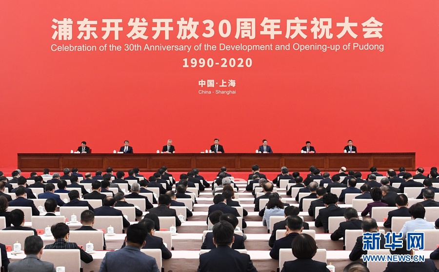 11月12日,浦東開發(fā)開放30周年慶祝大會在上海市舉行。中共中央總書記、國家主席、中央軍委主席習近平在會上發(fā)表重要講話。新華社記者申宏攝