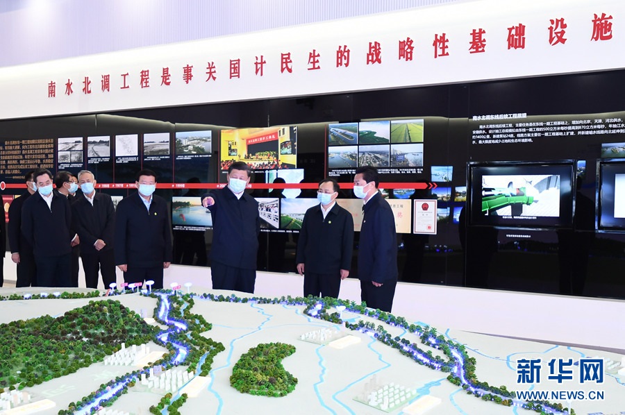 一個大型沙盤模型直觀地呈現(xiàn)了中國大地上水資源大范圍大規(guī)??鐓^(qū)域調(diào)配的壯闊景象,習近平總書記駐足凝望——