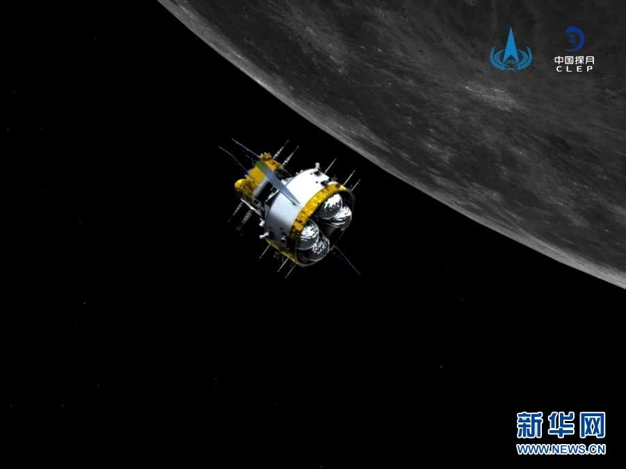 軌返組合體與上升器分離前模擬圖。記者從國家航天局獲悉,北京時間12月6日12時35分,嫦娥五號軌道器返回器組合體與上升器成功分離,進入環(huán)月等待階段,準(zhǔn)備擇機返回地球。新華社發(fā)(國家航天局供圖)