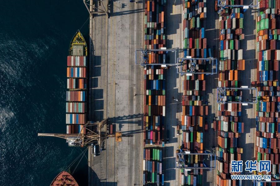這是2019年9月6日航拍的??吭谙ED比雷埃夫斯港集裝箱碼頭的中遠(yuǎn)海運銀河輪。新華社發(fā)(萊夫特里斯·帕察里斯攝)