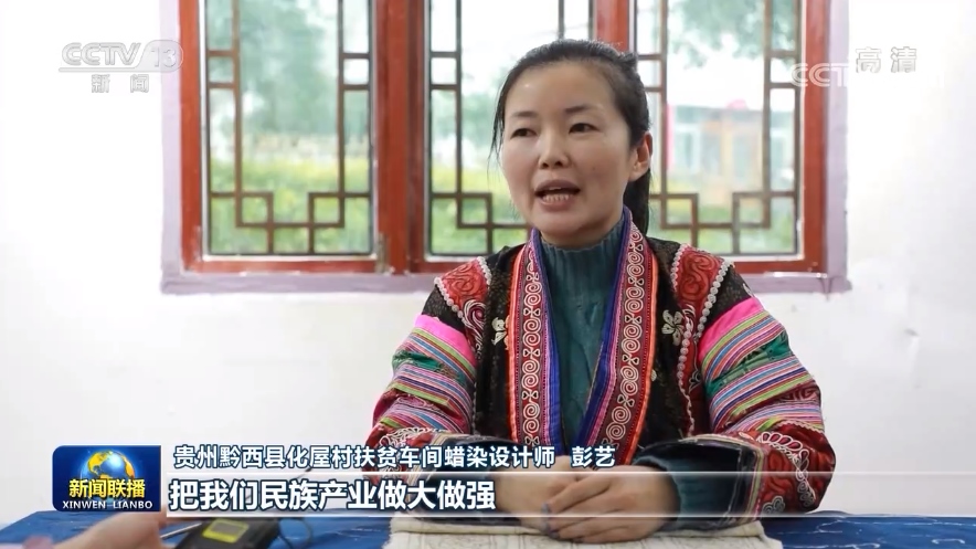 貴州黔西縣化屋村扶貧車間蠟染設計師彭藝:把我們民族產(chǎn)業(yè)做大做強,讓我們苗族同胞的生活,過得像我們蠟染刺繡一樣精彩。