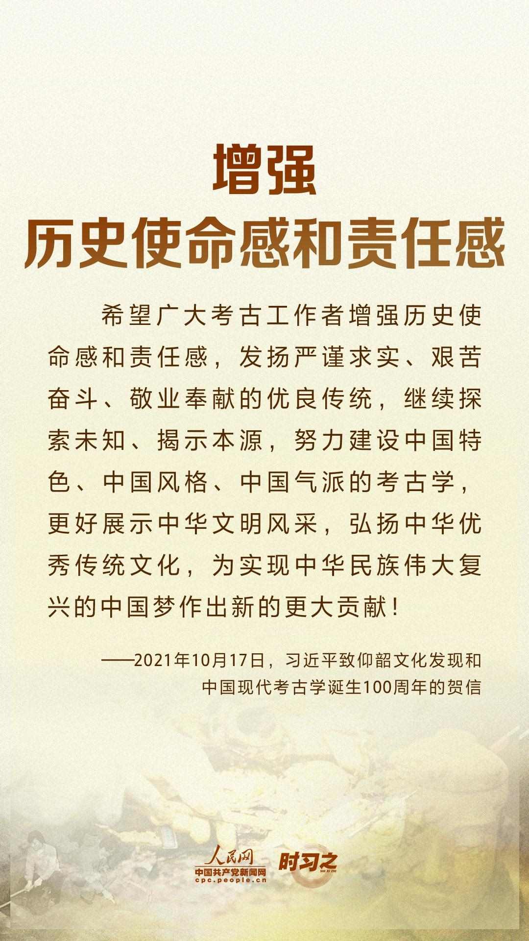 10月17日,在仰韶文化發(fā)現(xiàn)和中國(guó)現(xiàn)代考古學(xué)誕生100周年之際,中共中央總書記、國(guó)家主席、中央軍委主席習(xí)近平發(fā)來賀信,代表黨中央向全國(guó)考古工作者致以熱烈的祝賀和誠(chéng)摯的問候。