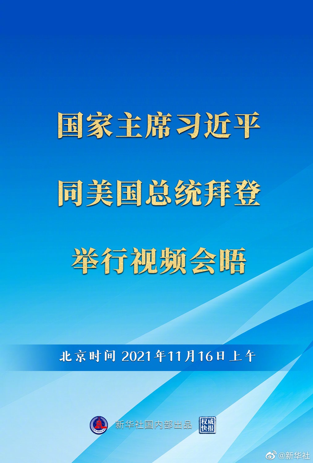 經(jīng)中美雙方商定,國家主席習(xí)近平于北京時間11月16日上午同美國總統(tǒng)拜登舉行視頻會晤,就中美關(guān)系和雙方共同關(guān)心的問題交換意見?,F(xiàn)在會晤已開始舉行。