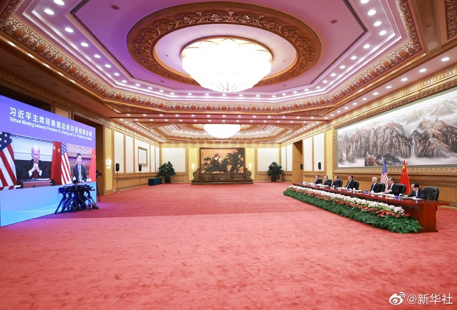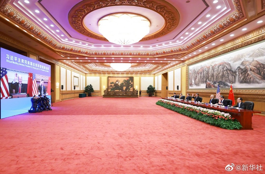 習近平強調,推動中美各自發(fā)展,維護和平穩(wěn)定的國際環(huán)境,包括有效應對氣候變化、新冠肺炎疫情在內的全球性挑戰(zhàn),都需要一個健康穩(wěn)定的中美關系。中美應該相互尊重、和平共處、合作共贏。我愿同總統先生一道,形成共識,積極行動,引領中美關系積極向前發(fā)展。這是造福兩國人民的需要,也是國際社會的期待。