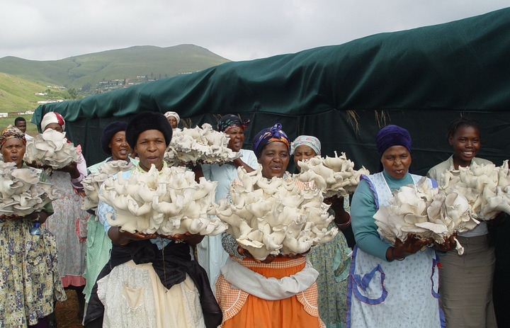 圖為2006年4月,南非一家菌草合作社的群眾展示收獲的菌草平菇。新華社發(fā)(國家菌草工程技術研究中心供圖)