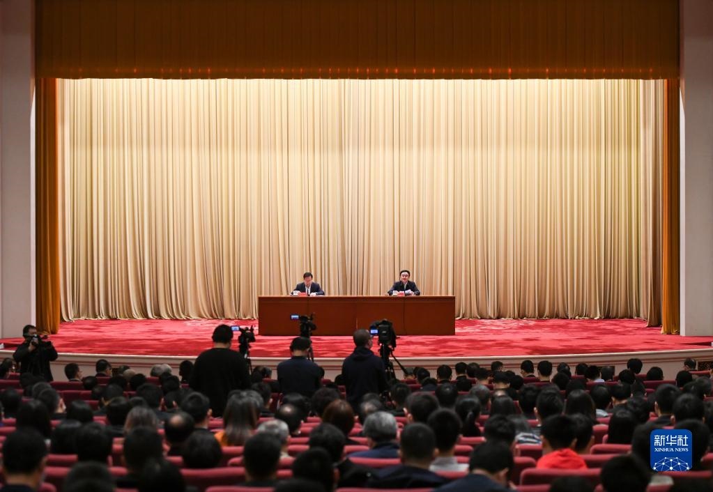 2021年3月16日,黨史學(xué)習(xí)教育中央宣講團(tuán)首場報(bào)告會在北京舉行。這是中央宣講團(tuán)成員、中央黨史和文獻(xiàn)研究院院長曲青山(右)在報(bào)告會上作宣講報(bào)告。新華社記者陳曄華攝