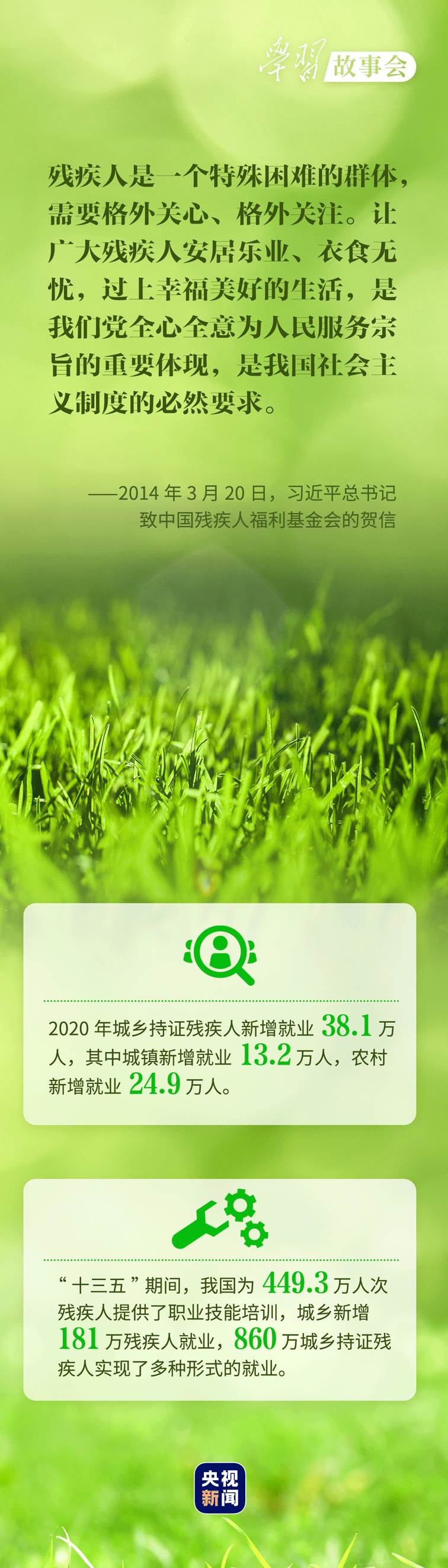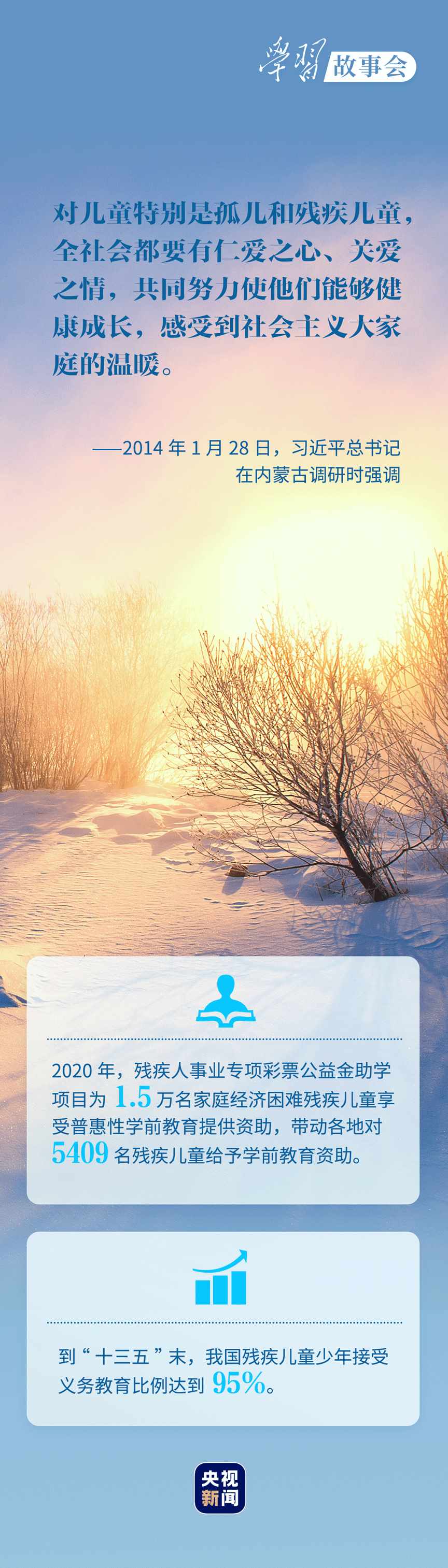 考察河北唐山市截癱療養(yǎng)院,看望呼和浩特市兒童福利院的孤殘兒童,會(huì)見殘疾人群體代表.....無論春夏秋冬,總書記對(duì)殘疾人群體的殷殷關(guān)懷溫潤心田。