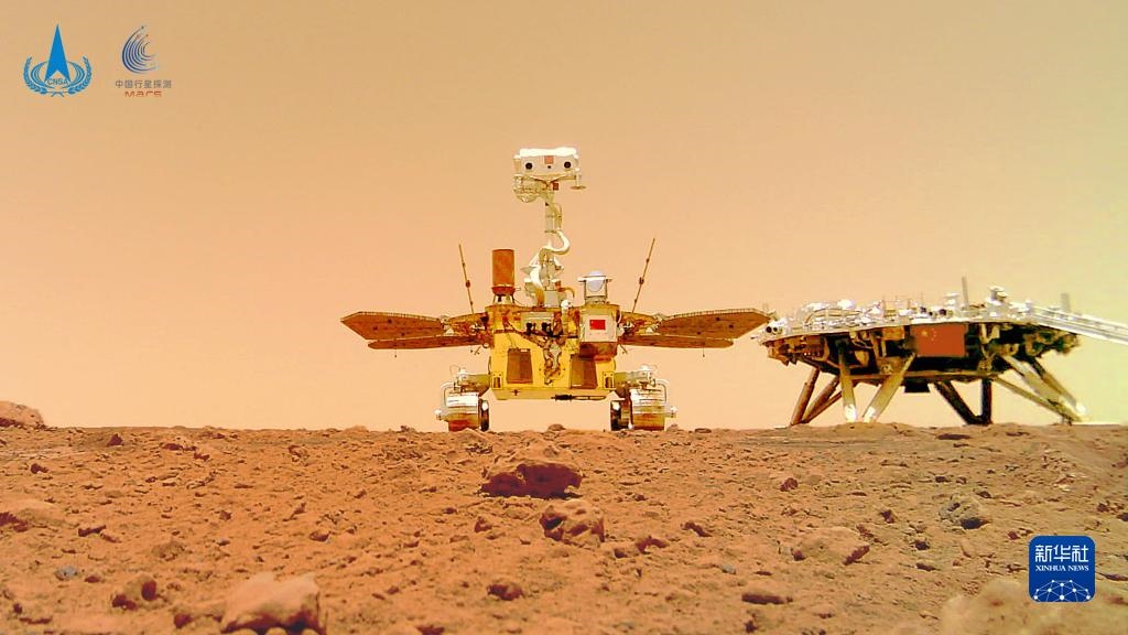 這是“著巡合影”圖。2021年6月11日,國家航天局在北京舉行天問一號(hào)探測(cè)器著陸火星首批科學(xué)影像圖揭幕儀式,公布了由祝融號(hào)火星車拍攝的著陸點(diǎn)全景、火星地形地貌、“中國印跡”和“著巡合影”等影像圖。首批科學(xué)影像圖的發(fā)布,標(biāo)志著我國首次火星探測(cè)任務(wù)取得圓滿成功。新華社發(fā)(國家航天局供圖)