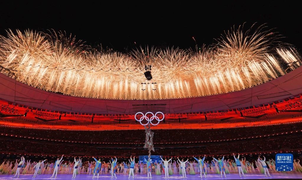 2022年2月20日晚,北京第二十四屆冬季奧林匹克運(yùn)動(dòng)會(huì)閉幕式在國家體育場(chǎng)舉行。這是焰火表演。新華社記者曹燦攝