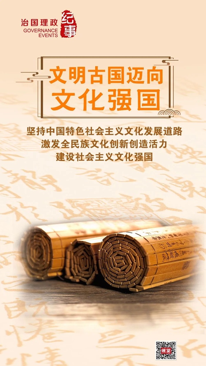 ◆ 黨的十八大以來,以習(xí)近平同志為核心的黨中央高度重視文化強(qiáng)國(guó)建設(shè),從黨的十八屆三中全會(huì)提出要“緊緊圍繞建設(shè)社會(huì)主義核心價(jià)值體系、社會(huì)主義文化強(qiáng)國(guó)深化文化體制改革”,到黨的十九大報(bào)告強(qiáng)調(diào)“要堅(jiān)持中國(guó)特色社會(huì)主義文化發(fā)展道路,激發(fā)全民族文化創(chuàng)新創(chuàng)造活力,建設(shè)社會(huì)主義文化強(qiáng)國(guó)”,再到黨的十九屆五中全會(huì)明確提出到2035年建成文化強(qiáng)國(guó),“十四五”規(guī)劃和2035年遠(yuǎn)景目標(biāo)綱要提出“促進(jìn)滿足人民文化需求和增強(qiáng)人民精神力量相統(tǒng)一,推進(jìn)社會(huì)主義文化強(qiáng)國(guó)建設(shè)”,社會(huì)主義文化強(qiáng)國(guó)建設(shè)不斷深入向前