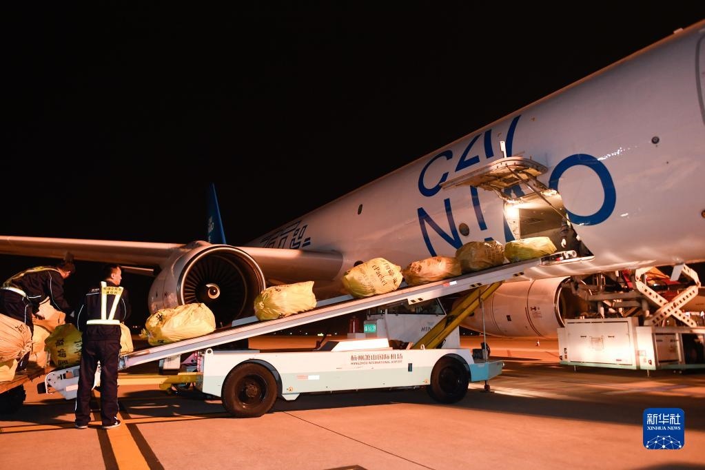 2019年10月30日凌晨,浙江杭州飛往俄羅斯首都莫斯科的首條直達電商貨運航線“菜鳥號”從蕭山國際機場首航。新華社記者黃宗治攝