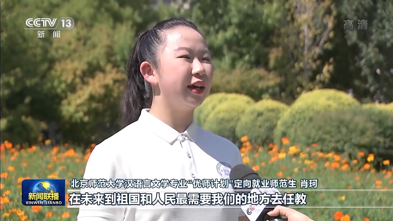 北京師范大學(xué)漢語(yǔ)言文學(xué)專業(yè)“優(yōu)師計(jì)劃”定向就業(yè)師范生肖珂:總書記勉勵(lì)我們?cè)鲩L(zhǎng)傳道授業(yè)解惑本領(lǐng),在未來(lái)到祖國(guó)和人民最需要我們的地方去任教。我定不負(fù)囑托,努力學(xué)習(xí),在畢業(yè)后回到我的家鄉(xiāng)。