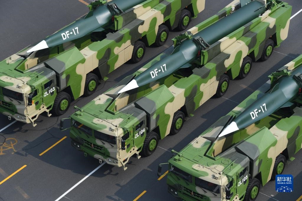 2019年10月1日上午,慶祝中華人民共和國成立70周年大會在北京天安門廣場隆重舉行。這是東風-17常規(guī)導彈方隊。新華社記者潘昱龍攝