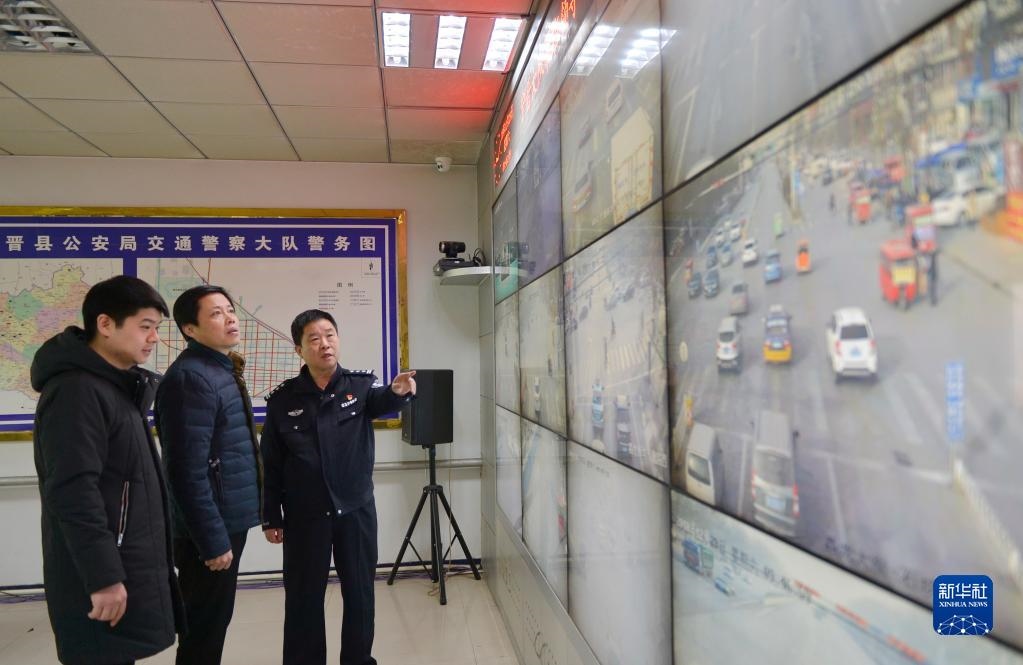 河北省寧晉縣紀檢干部借助公安機關(guān)交通監(jiān)控系統(tǒng),實時查看公車運行軌跡,嚴查公車私用問題( 2018年12月29日攝)。新華社記者 牟宇 攝