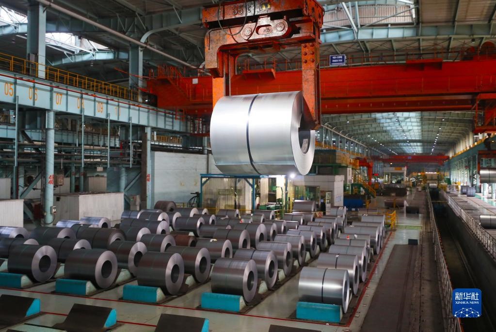 在遼寧本鋼冷軋廠,吊車(chē)在吊裝鋼卷(2021年8月18日攝)。新華社記者 楊青 攝