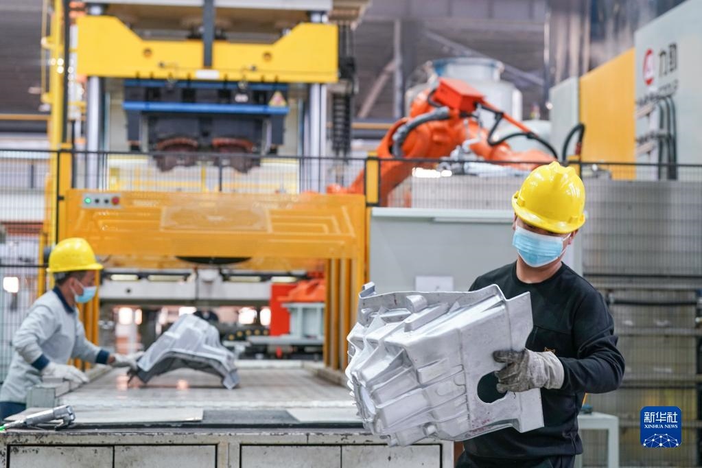 11月7日,在安徽省馬鞍山市含山縣輝晗精密機(jī)械有限公司,工人在壓鑄生產(chǎn)線上工作。新華社記者 劉軍喜 攝