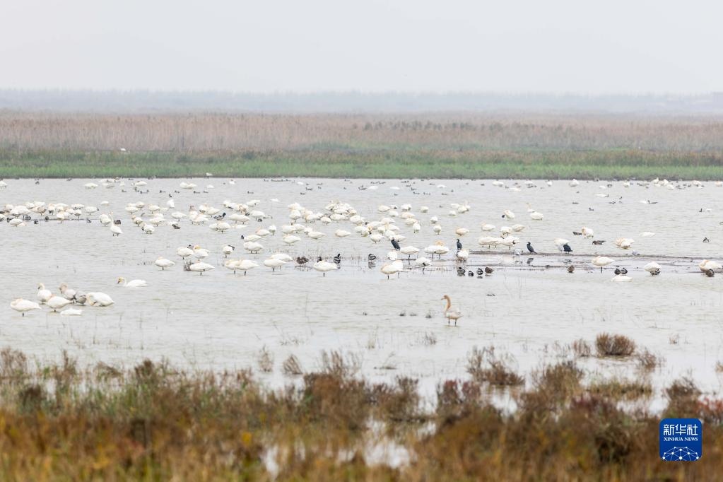 這是11月22日在上海崇明東灘鳥類國家級(jí)自然保護(hù)區(qū)拍攝的棲息的各種鳥類。新華社記者 王翔 攝