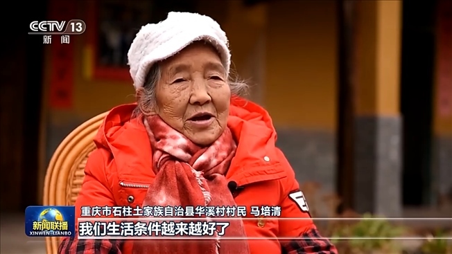 重慶市石柱土家族自治縣華溪村村民 馬培清:我們生活條件越來(lái)越好了,不愁吃、不愁穿。我們住的房子也寬敞了,一家大小吃的自來(lái)水干干凈凈的?,F(xiàn)在我們的生活條件發(fā)生的變化是習(xí)總書(shū)記給我們帶來(lái)的,非常高興。