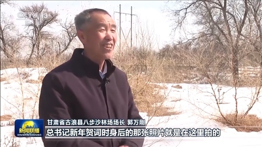 甘肅省古浪縣八步沙林場(chǎng)場(chǎng)長 郭萬剛:總書記新年賀詞時(shí)身后的那張照片就是在這里拍的,他叮囑我們要把身體保護(hù)好才能把沙治好,把日子過好,治沙就是為了更好的生活。