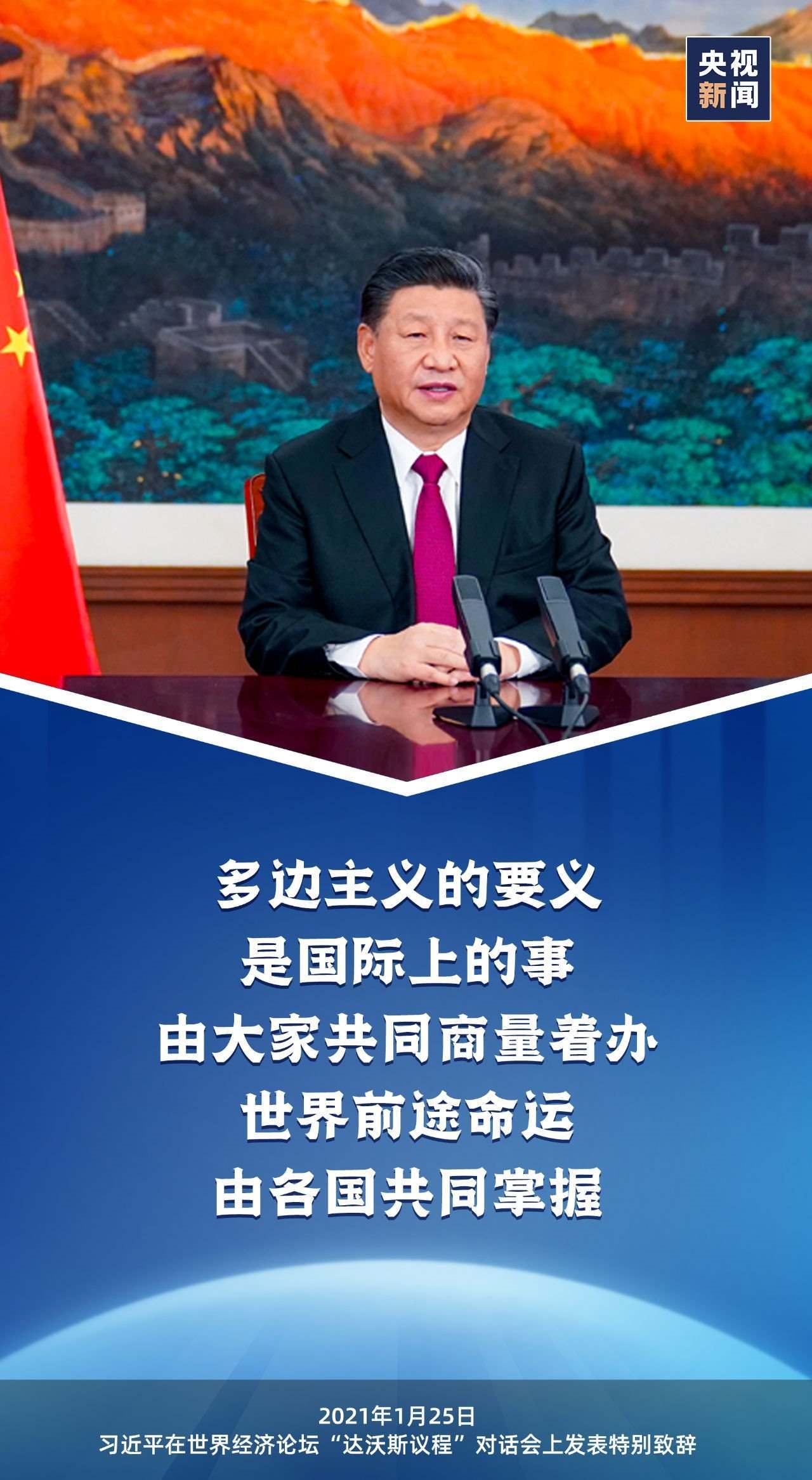 在2021年1月召開的世界經濟論壇“達沃斯議程”對話會上,習近平主席發(fā)表特別致辭,再次強調踐行多邊主義,并指出“多邊主義的要義是國際上的事由大家共同商量著辦”。