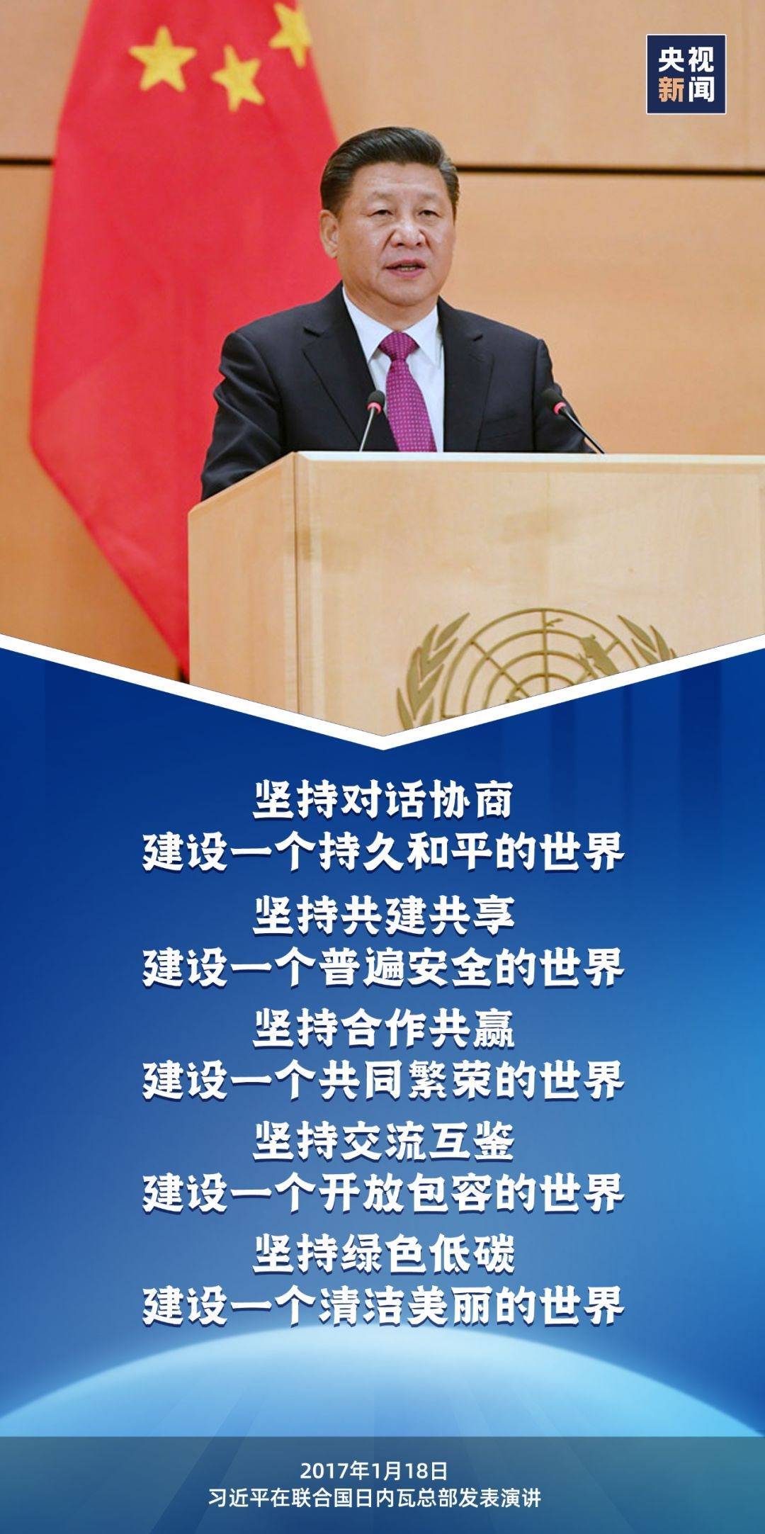 這樣的情景出現在2017年1月,習近平主席在聯合國日內瓦總部發(fā)表題為《共同構建人類命運共同體》的主旨演講的現場。
