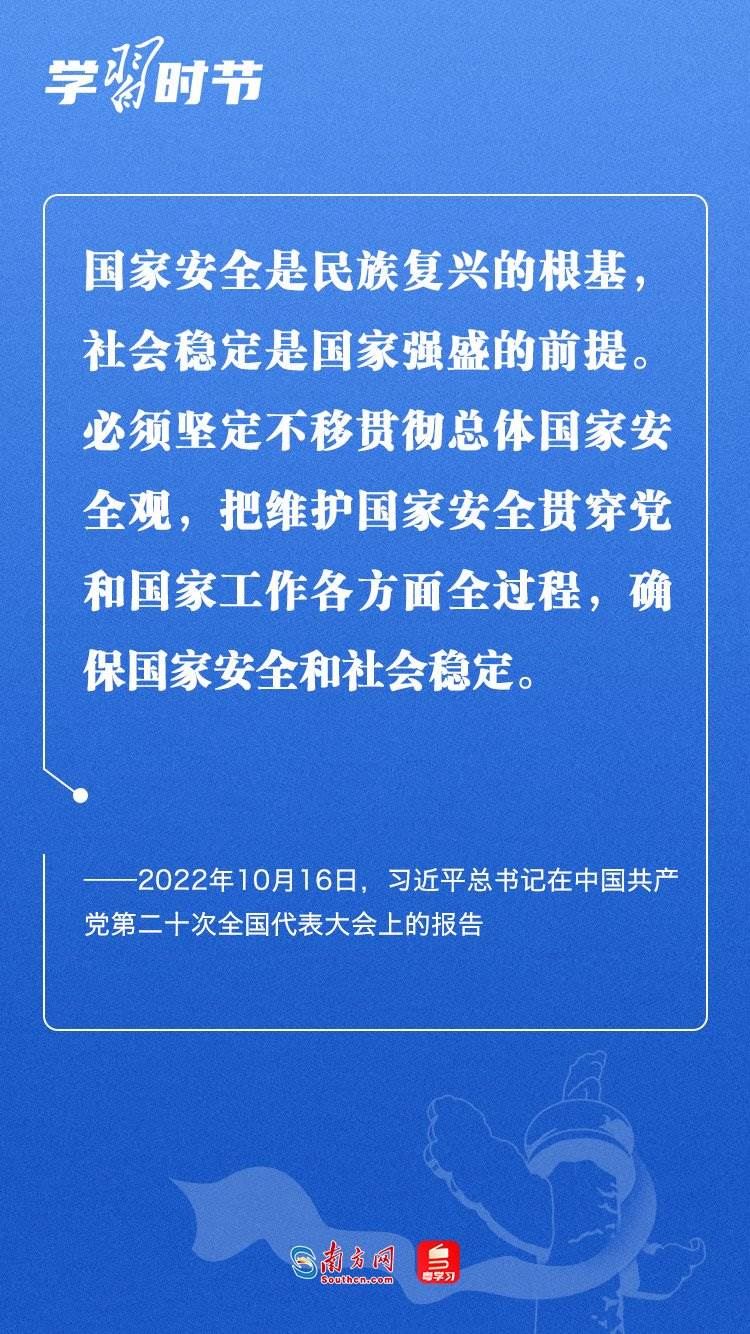 習(xí)近平總書記在黨的二十大報告中指出:“國家安全是民族復(fù)興的根基,社會穩(wěn)定是國家強(qiáng)盛的前提?!?月15日是我國第八個全民國家安全教育日。習(xí)近平總書記在2016年首個全民國家安全教育日到來之際曾強(qiáng)調(diào),實(shí)現(xiàn)中華民族偉大復(fù)興的中國夢,保證人民安居樂業(yè),國家安全是頭等大事。