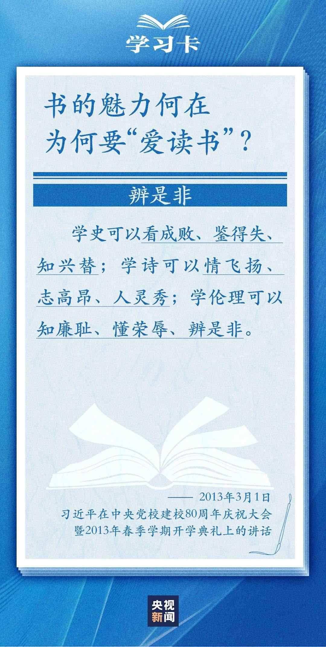 今天(4月23日)是世界讀書日。習(xí)近平曾多次講述和書籍的不解之緣,分享讀書學(xué)習(xí)的感悟,倡導(dǎo)“愛讀書、讀好書、善讀書”。書的魅力何在,為何要“愛讀書”?如何能“選好書”?怎樣“善讀書”?一起學(xué)習(xí)↓