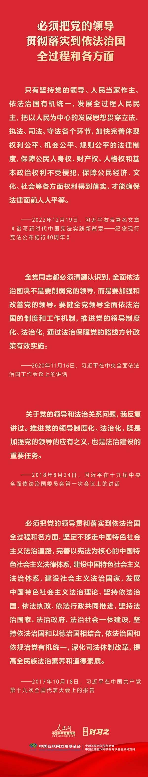 今年是貫徹落實(shí)黨的二十大精神的開局之年。中共中央政治局決定從今年4月開始,在全黨自上而下開展學(xué)習(xí)貫徹習(xí)近平新時(shí)代中國特色社會(huì)主義思想主題教育。習(xí)近平法治思想是習(xí)近平新時(shí)代中國特色社會(huì)主義思想的重要組成部分,人民網(wǎng)·中國共產(chǎn)黨新聞網(wǎng)推出學(xué)法時(shí)習(xí)之·學(xué)習(xí)習(xí)近平法治思想系列策劃,本篇聚焦“堅(jiān)持黨對(duì)全面依法治國的領(lǐng)導(dǎo)”。
