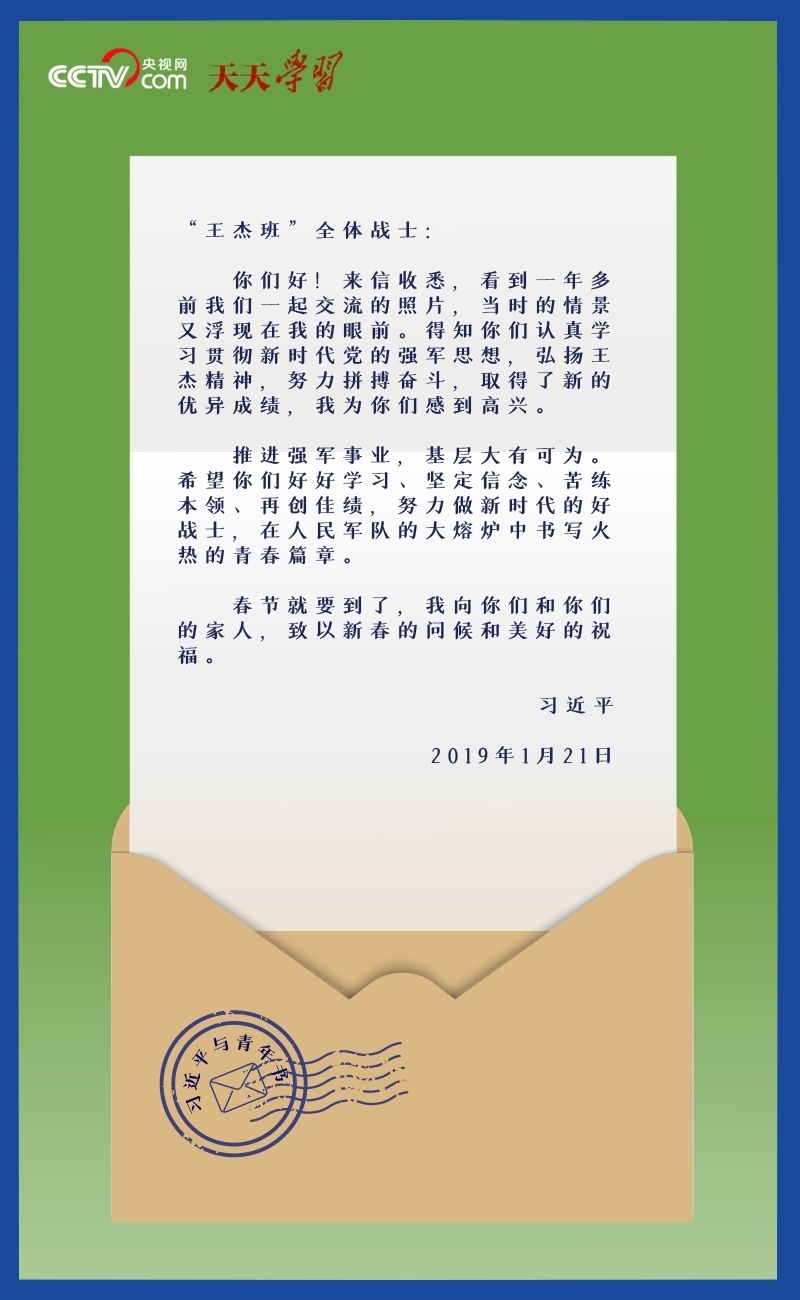 2019年春節(jié)前夕,第71集團(tuán)軍某旅“王杰班”全體戰(zhàn)士收到了一封特別的回信。
