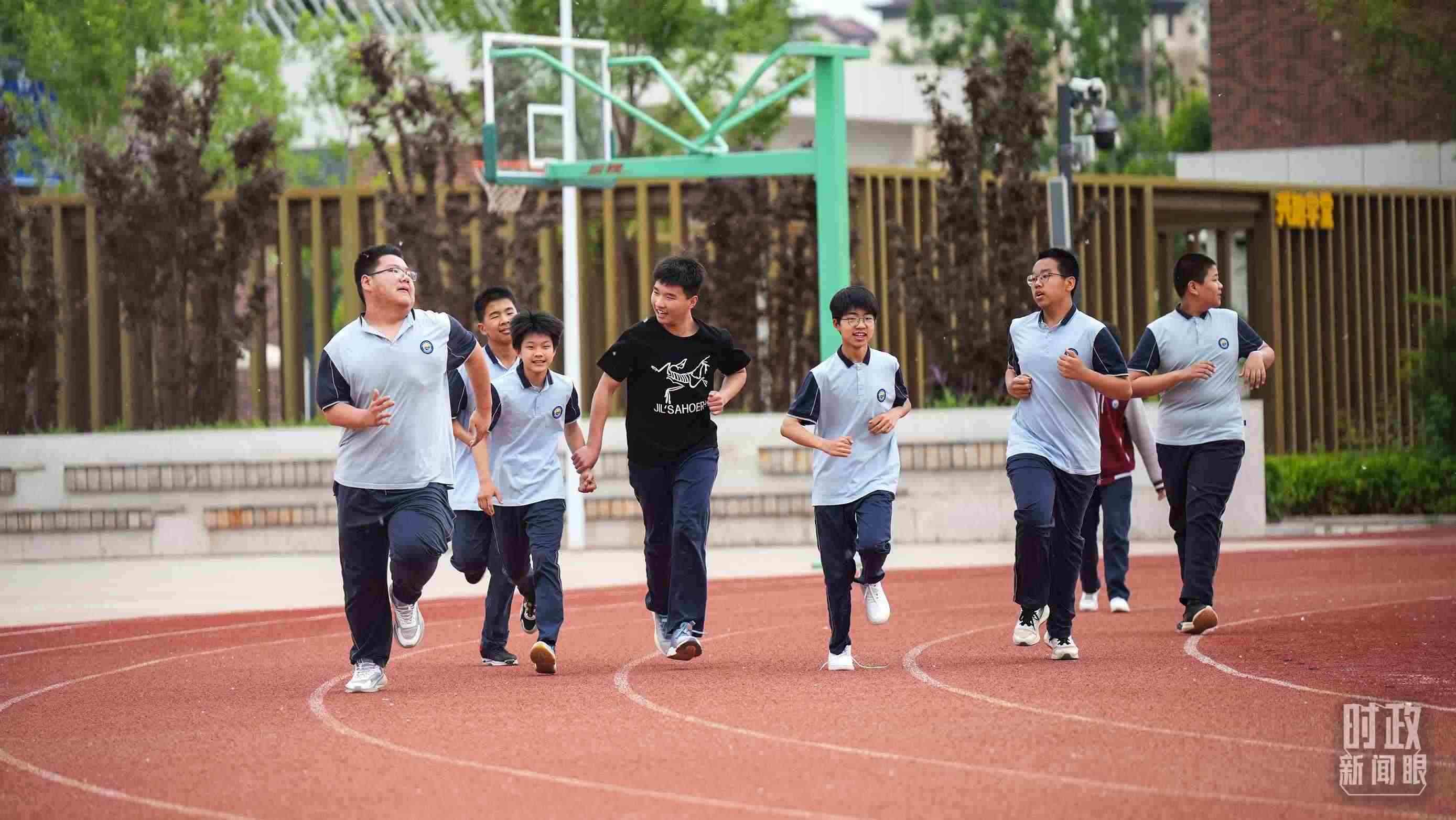 △容東安置區(qū)的雄安容和紅杰初級(jí)中學(xué)內(nèi),中學(xué)生在操場(chǎng)練習(xí)長(zhǎng)跑。(總臺(tái)國(guó)廣記者李晉拍攝)