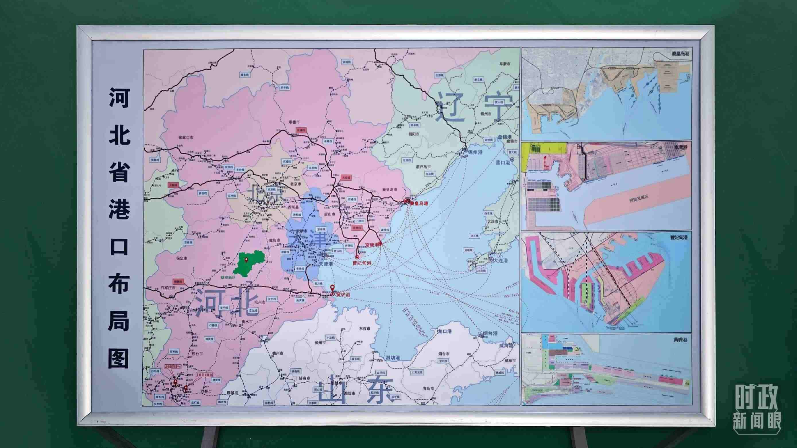 △河北省港口布局圖展示。(總臺央視記者彭漢明拍攝)