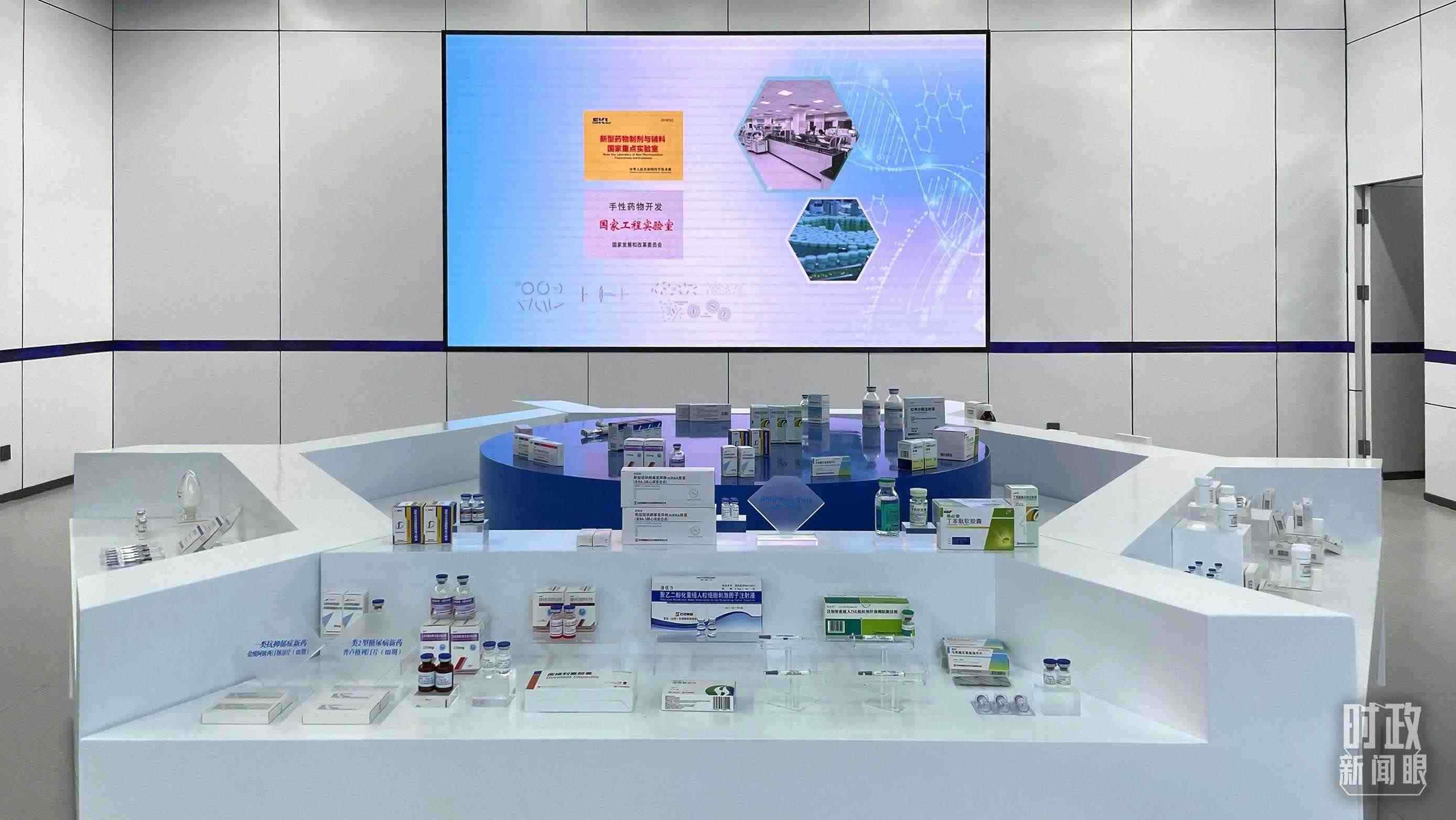 △石家莊國際生物醫(yī)藥園規(guī)劃展館內(nèi)展示企業(yè)研發(fā)生產(chǎn)的藥品。(總臺央視記者蔣碩拍攝)