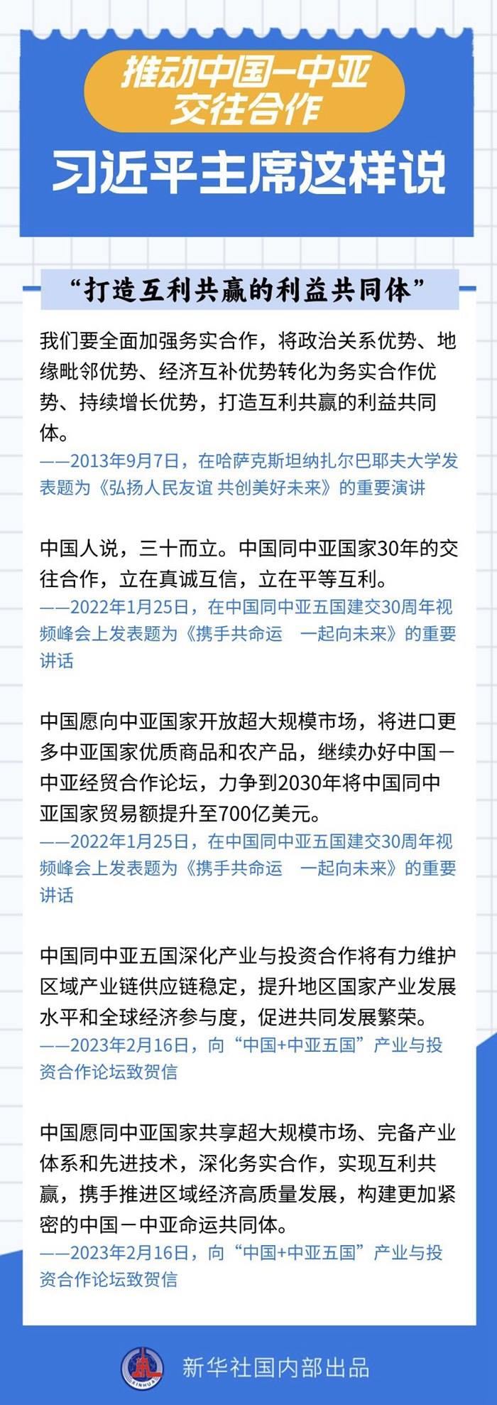 過去十年間,習(xí)近平主席同中亞五國(guó)領(lǐng)導(dǎo)人保持密切互動(dòng),引領(lǐng)中國(guó)同中亞國(guó)家政治互信不斷深化,務(wù)實(shí)合作提質(zhì)升級(jí),國(guó)際協(xié)作走深走實(shí)。關(guān)于中國(guó)-中亞交往合作,習(xí)近平主席作出過哪些重要論述?一起來看——