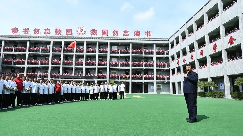 2021年9月14日,在陜西榆林市綏德實驗中學考察時,習近平總書記走進教室、操場,觀看同學們書法練習和體育鍛煉,同大家親切交流。他勉勵同學們:“真正做全面發(fā)展的人才,一步一步地走下去,最終都能成為對社會有用的人、國之棟梁。”“德智體美勞全面發(fā)展,字字千金,都是經(jīng)過多年總結(jié)摸索才得出來的。”