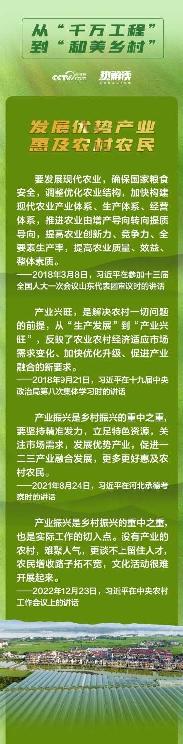 央視網(wǎng)《熱解讀》欄目特別策劃“從‘千萬工程’到‘和美鄉(xiāng)村’”系列解讀文章,緊扣鄉(xiāng)村振興戰(zhàn)略“產(chǎn)業(yè)興旺、生態(tài)宜居、鄉(xiāng)風(fēng)文明、治理有效、生活富?!笨傄?,全面展現(xiàn)新時(shí)代中國多措并舉建設(shè)宜居宜業(yè)和美鄉(xiāng)村的生動(dòng)實(shí)踐。