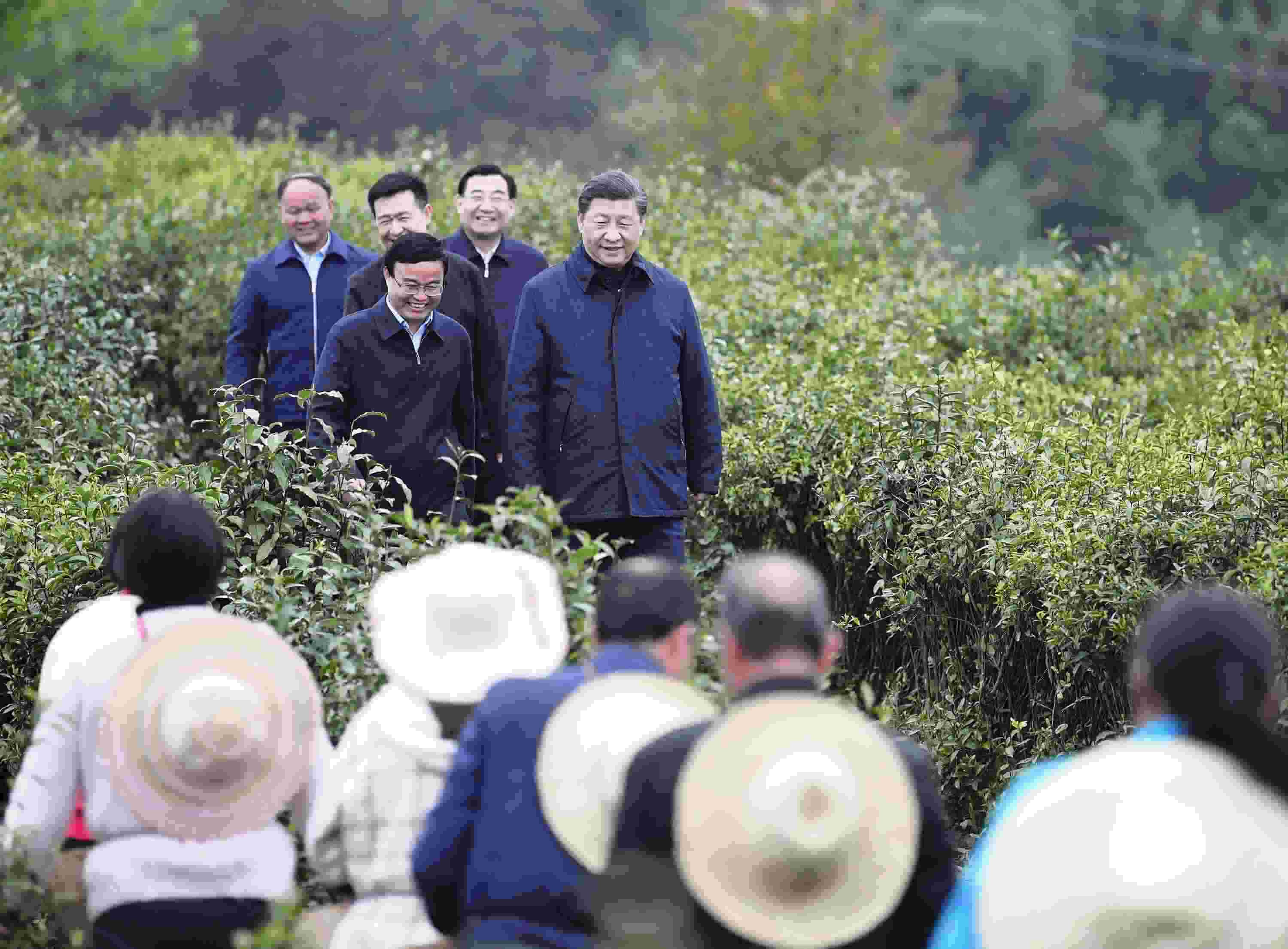 2020年4月21日,習(xí)近平總書記來到陜西省安康市平利縣老縣鎮(zhèn),在茶園考察脫貧攻堅(jiān)情況。